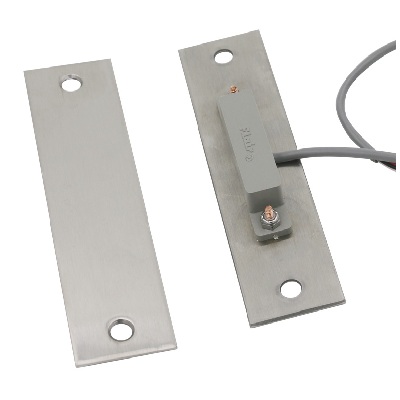 Recessed ANSI magnetic contact, SPDT, 1" Gap, 4 7/8" L x 1 1/4 W x 5/8" D, 12" jacketed lead, gray.