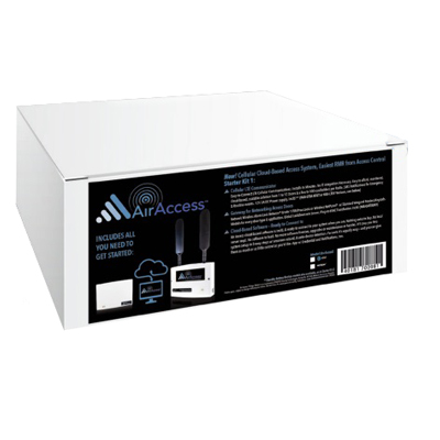 AirAccess Starter Kit 1 includes Cellular Communicator with Transformer (AT&T Network); Gateway for Networking up to 63 Access Doors (with Trilogy Networx or ArchiTech Locks or NetworxPanel and Wiegand Prox Readers); AirAccess Cloud-based Software "Ready to Connect to". Cellular communicator, makes cell connections for you, outside the client network/server/firewall for easy setup.(*Requires monthly plan.)