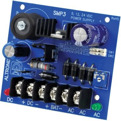 Cargador de fuente de alimentación, 6/12 / 24VDC, 2.5A, 24 / 28VAC, tablero Altronix SMP3