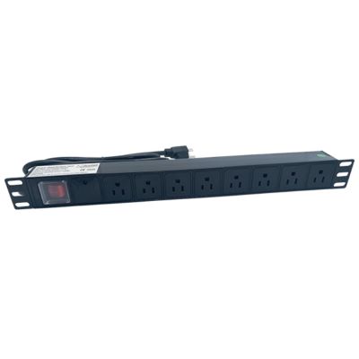 1U Horizontal Mount, 19 inches, comply with ANS/TIA RS 310D, Back-input, 8 outlets, NEMA515R sockets (6 /8 front), 1 way, 15 Amp, Master overload Protection & Power Indicator, NEMA5-15 Plug with 14 Gauge cable.